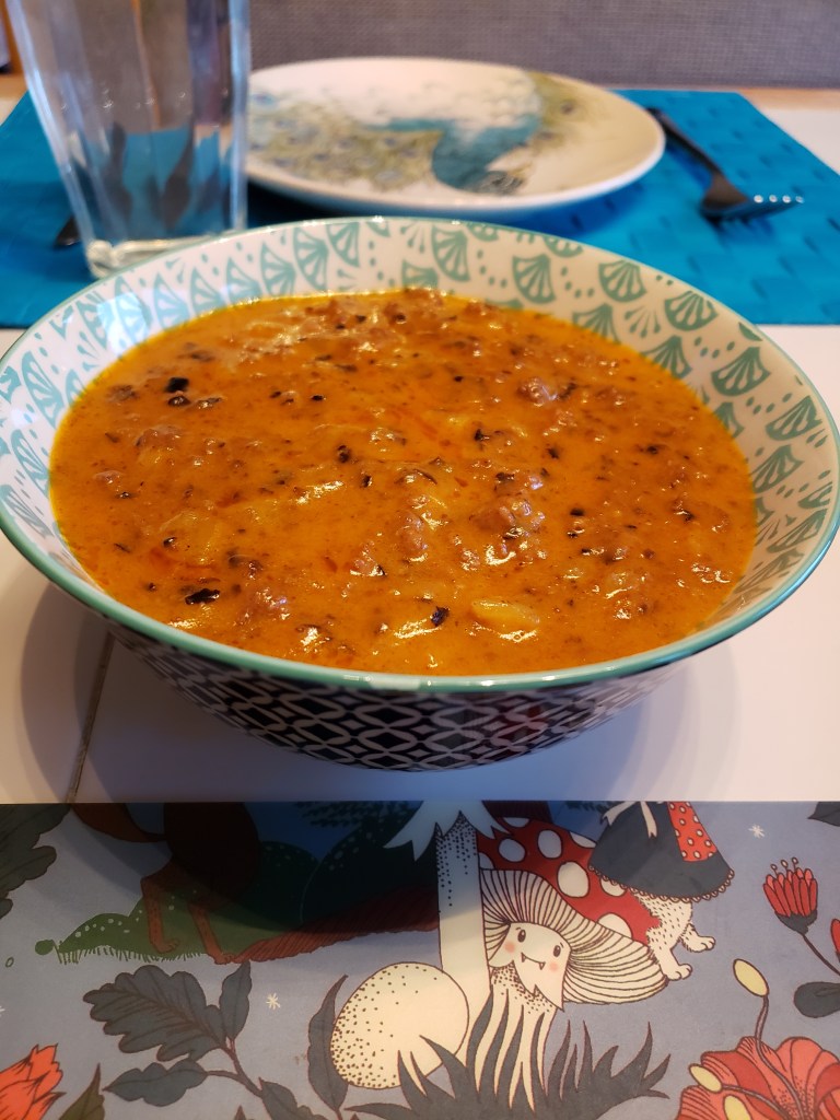 If you are not familiar with tagine flavors, it is a Moroccan method of cooking meat. Tagine is actually a kind of pot that is shallow with a tall cone with a point on top. The steam circulates during cooking making the meat tender. In this recipe, the crockpot fills in nicely. The flavors are a mix of turmeric, cinnamon, allspice, nutmeg, saffron, ginger and cardamon. The dish is a mix of meat, tomatoes, chickpeas and dried apricots, so there is a great mix of textures as well. You can swap in or out anything into it. Sweet potatoes are good and any other veg that can handle long-term cooking.